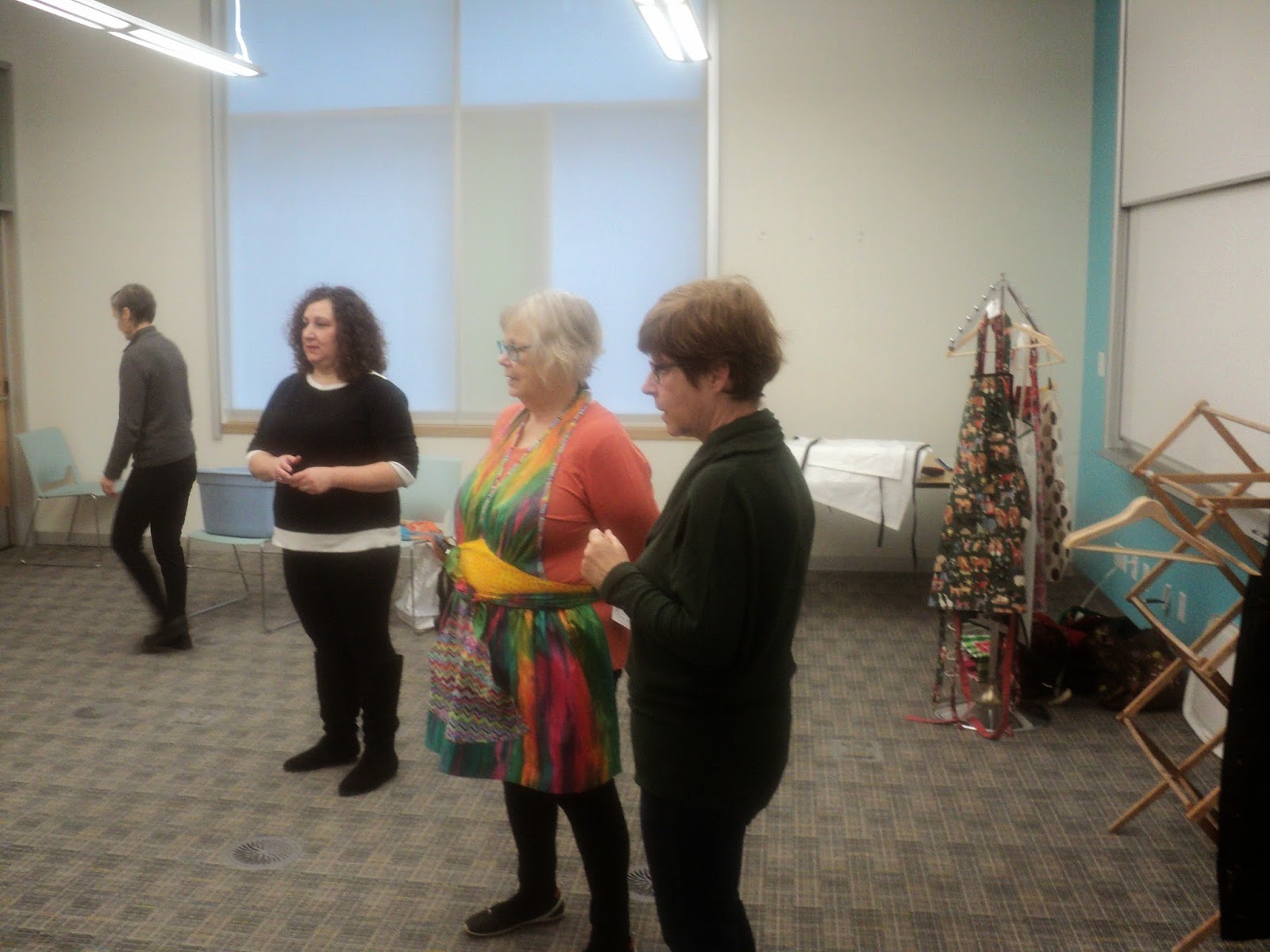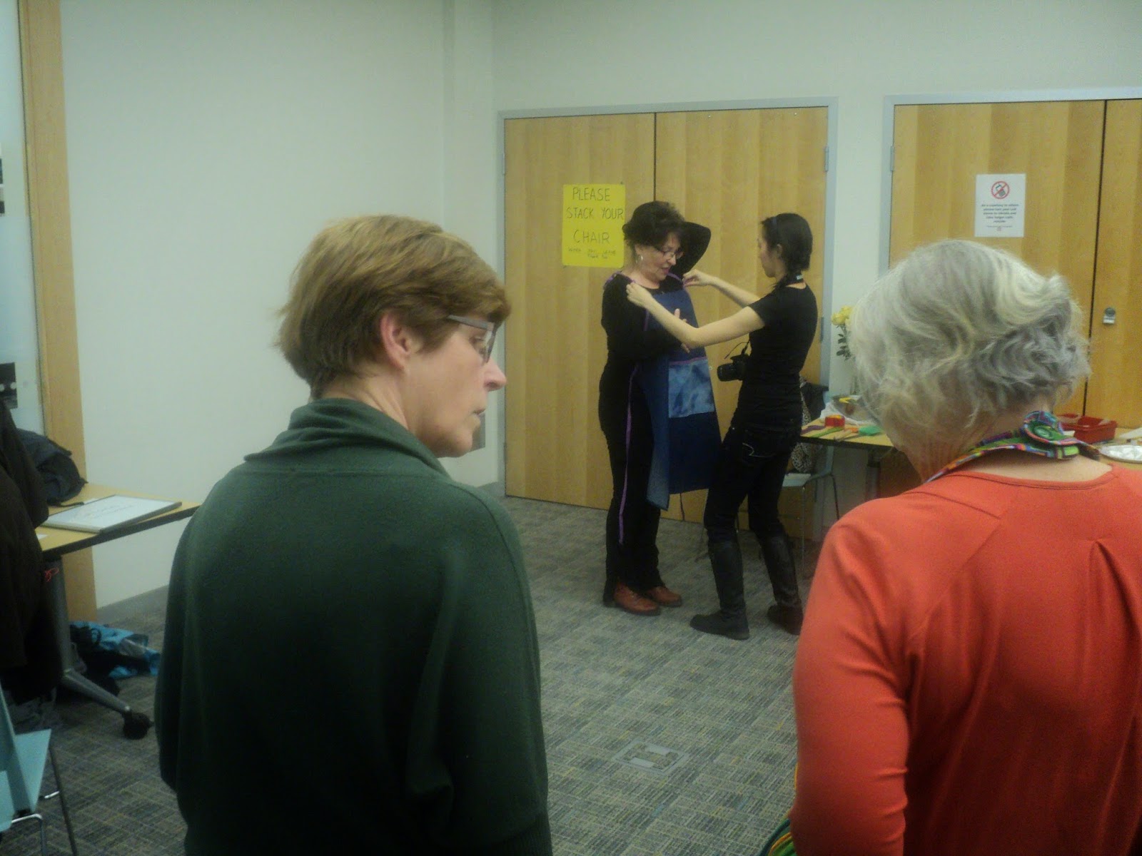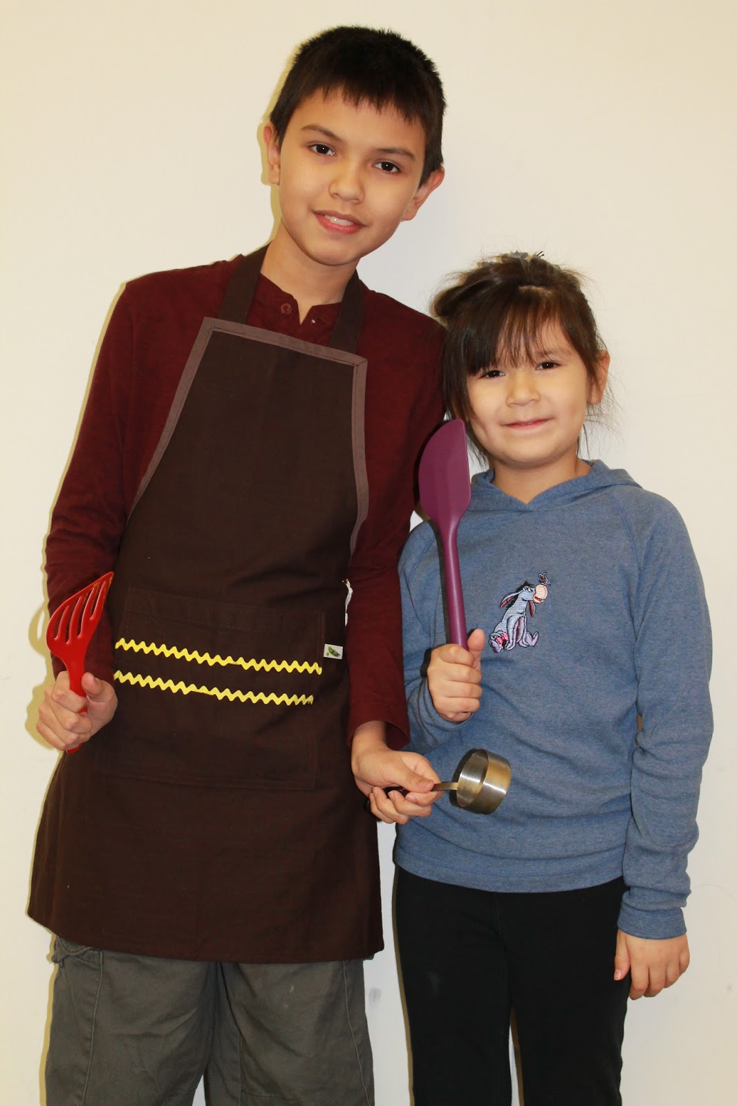 together to photograph and model some of the aprons that our sewing